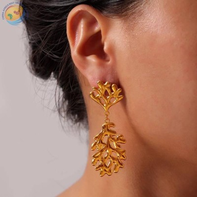 欧美新款时尚高级感个性复古创意钛钢镀金几何方形条纹耳环饰品女