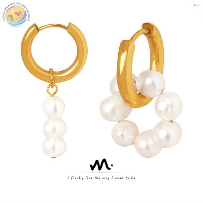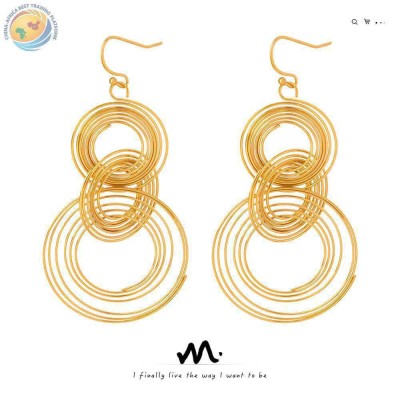 欧美新款时尚个性小众设计钛钢镀金几何圆圈多层次耳环饰品批发女