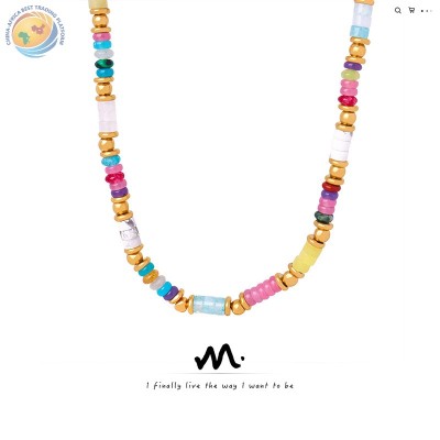 欧美跨境新款复古民族风个性小众设计混彩天然石手工串珠项链饰品