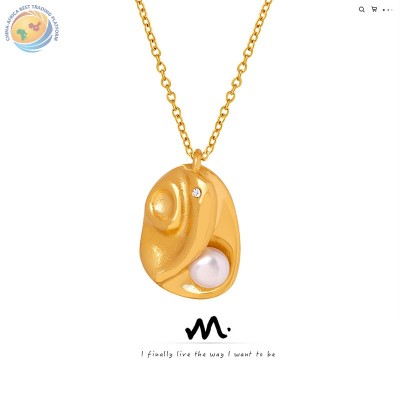 西太后异形土星镶嵌锆石高光珍珠吊坠立体设计质感钛钢镀金女项链