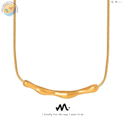 跨境电商爆款欧美个性时尚男女百搭条状不规则吊坠冷淡项链圆蛇链