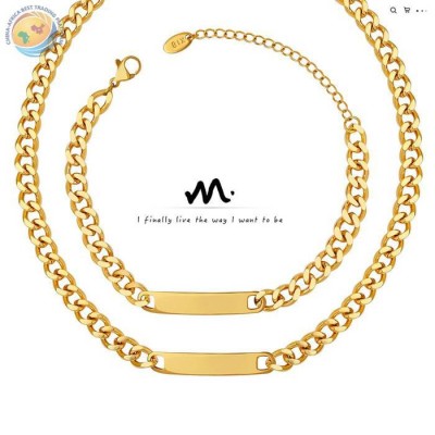 欧美风嘻哈重工夸张几何长条手链项链钛钢材质镀18k真金饰品套装