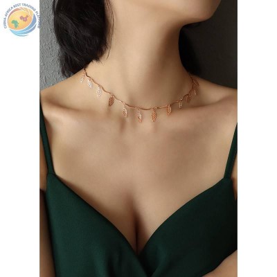 欧美树叶一叶子吊坠项链女锁骨链ins性冷淡风简约钛钢18k金P602