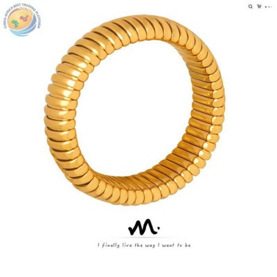 欧美男女款潮流街拍简约螺旋纹蛇环戒指不锈钢金属质感时尚手指环