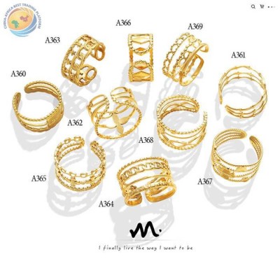 欧美热销开口钛钢镀金几何型混搭时尚多样戒指不褪色嘻哈潮流指环