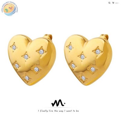 意大利杂志封面女星同款耳环钛钢材质爱心镶嵌锆石耳钉饰品女F275