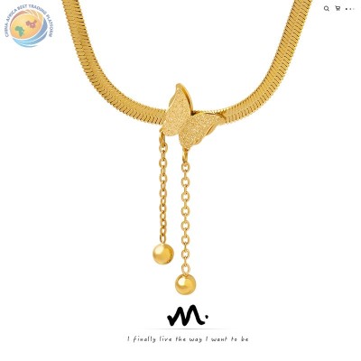 刀片链磨砂蝴蝶流苏钢珠性感项链森系优雅气质感小众个性饰品P513