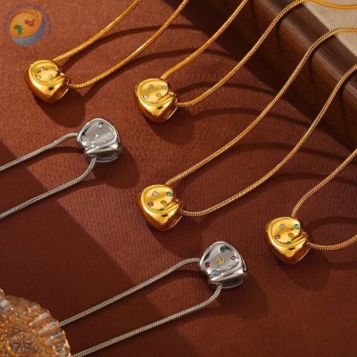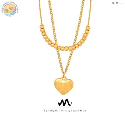 日韩跨境新款简约个性小众设计钛钢镀金爱心格纹钛钢珠项链饰品女