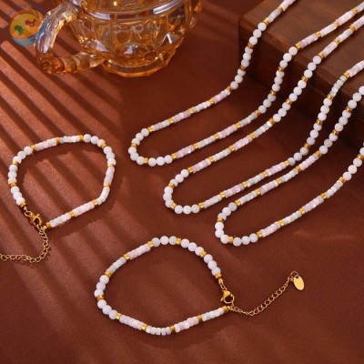法式优雅气质温婉休闲风首饰套装贝壳串珠设计感小众百搭钛钢饰品