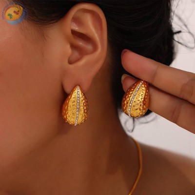 法式时尚冷淡风设计感个性饰品镶钻耳环水滴造型吊坠钛钢首饰套装