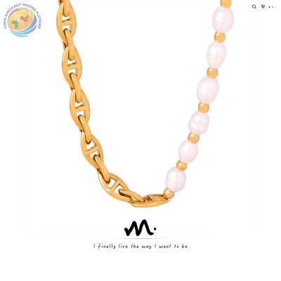 欧美新款高级感小众设计个性百搭钛钢镀金淡水珍珠AB链项链饰品女