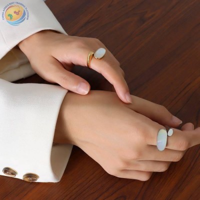 ins冷淡风欧美小众钛钢镀18k金饰品白母贝椭圆开口戒指女手饰