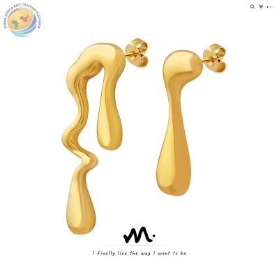 ins风小众个性独特设计异形不对称耳环 钛钢镀18K金时尚新款耳钉