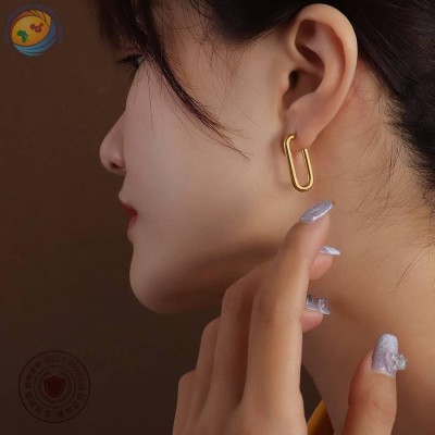 Marka法式风格ins饰品earringU型几何耳环耳钉钛钢18k金耳饰 F456