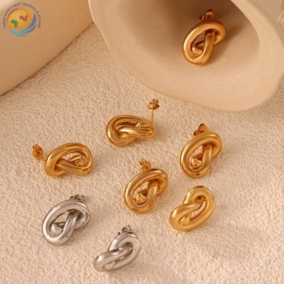 港风个性时尚简约饰品几何爱心线条扭转设计感钛钢镀金镂空耳钉