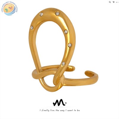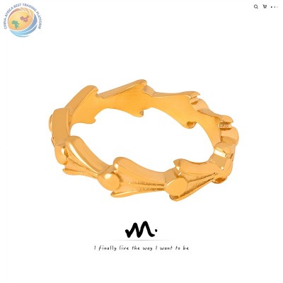 Fashion delicate all match personality open ring cold atmosphere titanium steel gold plated ring forged hand jewelry female