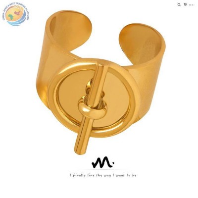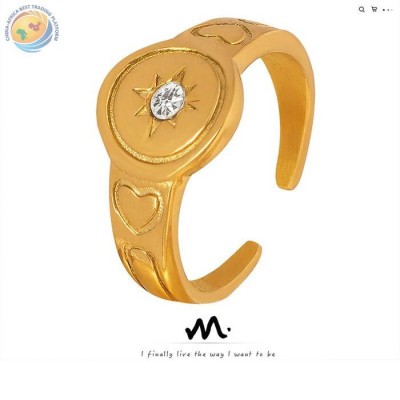 European and American hip hip trend personality open ring couple fashion niche hand jewelry titanium steel plated 18K gold women's jewelry