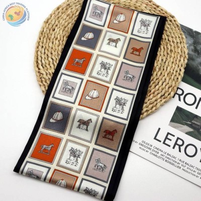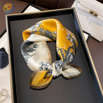 Spring new yellow and white crepe satin printed silk scarf spring senior sense mulberry silk small square scarf all match scarf