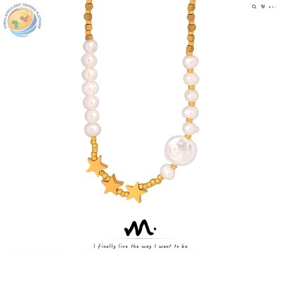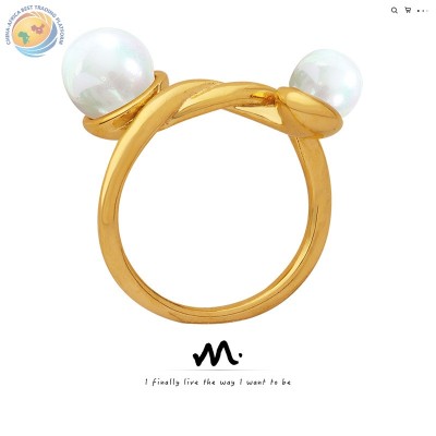 Y type imitation pearl Italian designer unique style ring female exaggerated personality Titanium steel plated 18k gold A166