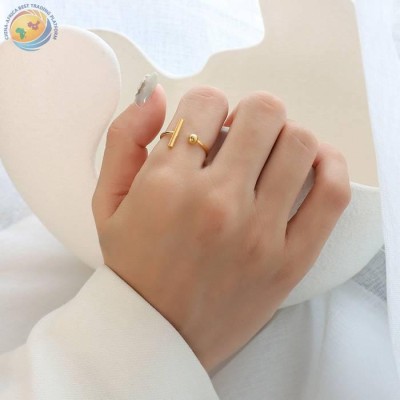 Japan and South Korea Ring Simple T-shaped ring Titanium steel 18k gold index finger ring couple ring tail ring stainless steel A052