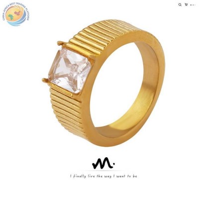 European and American hot couple vintage style inset zircon ring titanium steel plated 18K gold ring does not fade
