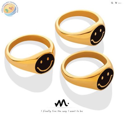 New Korean fast fading cute smiley face geometric ring niche design titanium steel gold plated accessories fashion jewelry women