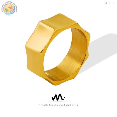 French fashion exaggerated geometry acrylic ring Titanium steel plated 18K gold ring temperament elegant jewelry