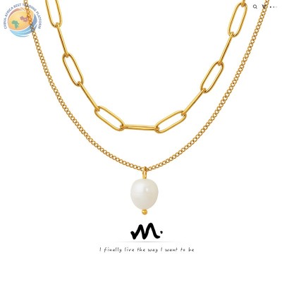 ins冷淡风淡水珍珠吊坠多层叠戴项链女钛钢锁骨颈链