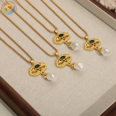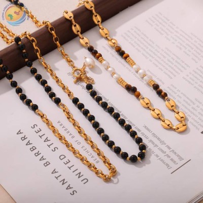 欧美时尚复古宫廷风天然虎眼石淡水珍珠手工串珠项链