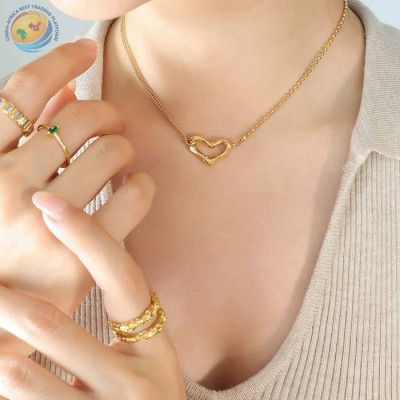 热销ins风不规则桃心吊坠钛钢18k金爱心项链