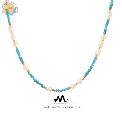 波西米亚饰品潮流时尚通勤彩色石头珍珠项链