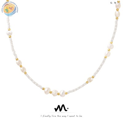 精致气质不掉色法式复古个性玻璃珠淡水珍珠坠