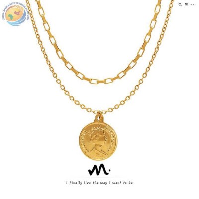 潮酷ins冷淡风欧美配饰双层叠戴人像圆牌吊坠项链