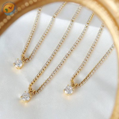 轻奢小众满钻皓石链单钻吊坠项链钛钢镀18K真金
