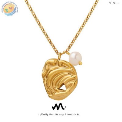 抽象艺术不规则吊坠淡水珍珠项链女钛钢镀金首饰