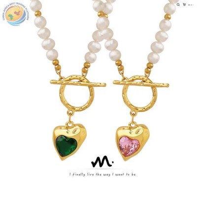 潮流OT扣桃心锆石吊坠项链天然淡水珍珠链质感首饰