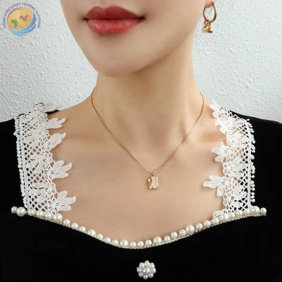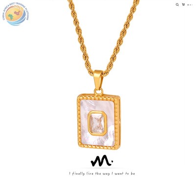 方块白海贝锆石吊坠轻奢风麻花链不锈钢颈链项链