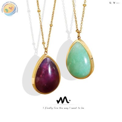 韩系气质个性天然原石锁骨链水滴形椭圆吊坠项链