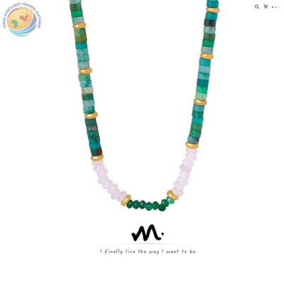 欧美新款高级感轻奢天然石绿翡翠手工串珠锁骨链