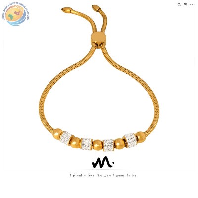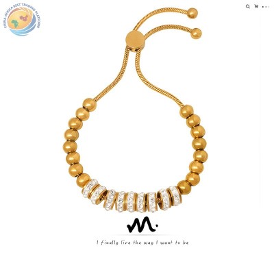 轻奢风镶水钻串珠手链潮流时尚钛钢镀金气质
