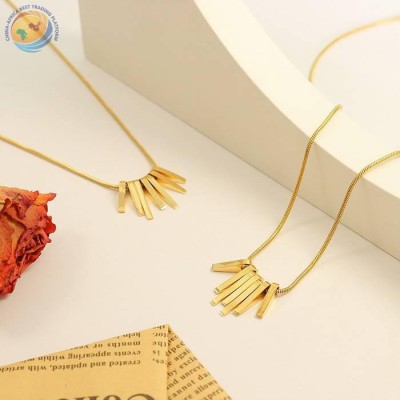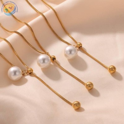 简约钛钢镀金圆珠流苏高光贝珠吊坠项链饰品