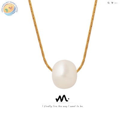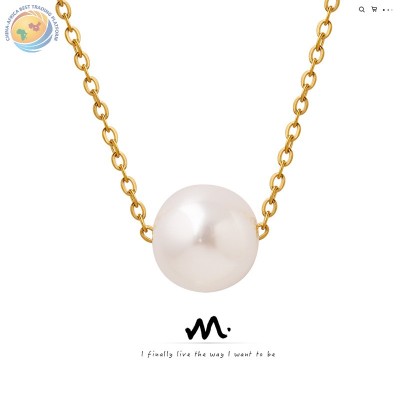 钛钢镀金锁骨链仿珍珠吊坠项链镀18K金不退色