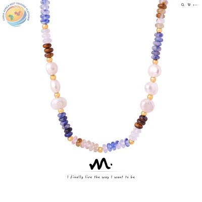 高级感淡水珍珠天然石算盘珠手工串珠项链