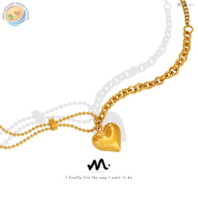 立体桃心吊坠项链几何型钛钢百搭锁骨颈链