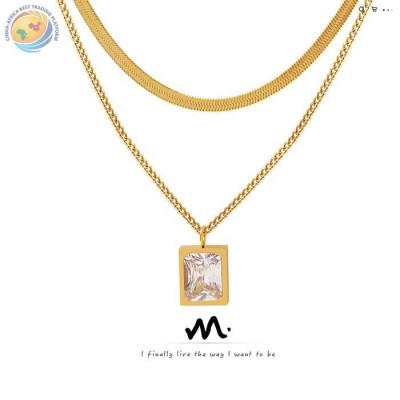 法式叠戴双层链条项链锆石吊坠百搭刀片