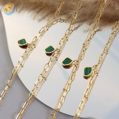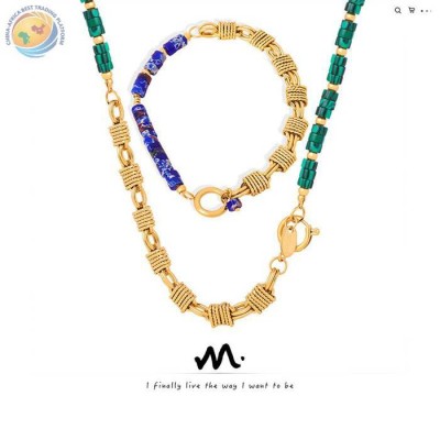 高级感小众设计轻奢手链铜材质天然石项链饰品套装