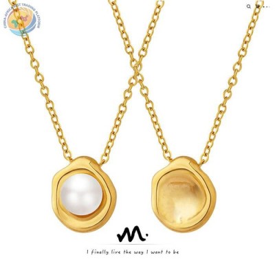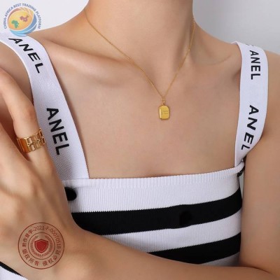 精致几何椭圆吊坠项链百搭轻奢钛钢镀金锁骨链