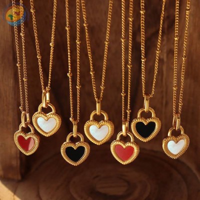 欧美几何型双面桃心项链钛钢镀金爱心吊坠项链