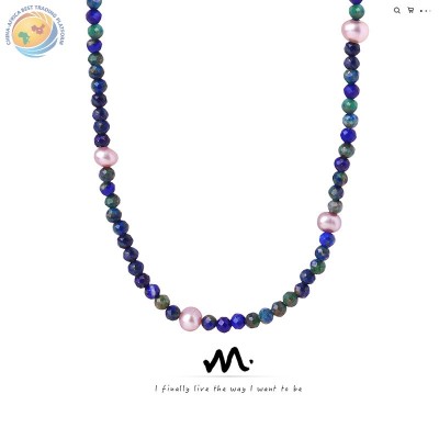 淡水珍珠手工串珠猫眼石钛钢吊坠项链国潮饰品