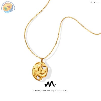 独特几何型不规则纹理侵蚀设计简约钛钢镀金项链
